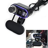 JX-SHOPPU ブルーLED付き 12/24V バイク用 シガーソケット+2ポートUSB 電源スイッチ内蔵タイプ (汎用シガープラグ、配線部材)防水防塵カバー付き iPhone iPad スマート